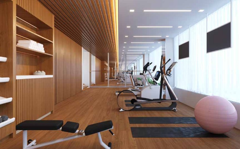 In a private gym we designed and implemented in Abu Dhabi, we achieved these goals by incorporating a combination of natural wood and synthetic wood mixed with rubber. This combination ensures both functionality and aesthetic appeal, creating a robust and visually pleasing workout environment.