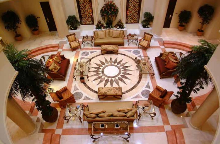 We designed the floors, walls, and ceilings in a cohesive and harmonious style, ensuring consistency throughout the palace. Additionally, we crafted custom furniture to complement the overall decorative vision of the building, creating a unified and luxurious aesthetic.